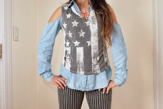 My flag shirt I am wearing is just a regular tank worn on top of a denim shirt. Go out of your comfort zone and try layering things you wouldn't normally layer. You might be surprised with the result